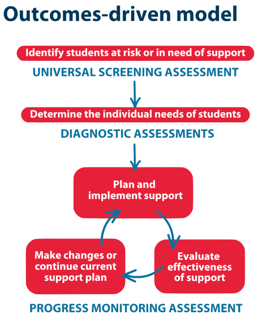 As the student receives intervention, teachers regularly check how well the student’s skills are doing using short progress monitoring assessments. These quick assessments allow everyone to understand if the intervention is working.